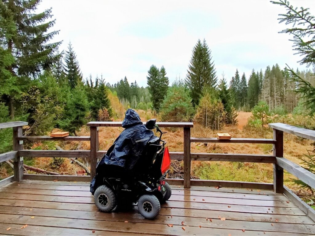 Entlang der Strecke gibt es regelmäßig Sitzgelegenheiten, und die Aussichtsplattform mit ihrem atemberaubenden Blick über das Moor war ein absolutes Highlight. Trotz des prasselnden Regens konnte ich diesen Moment in vollen Zügen genießen – und das völlig barrierefrei!