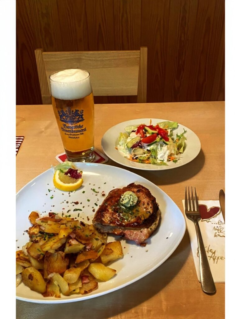 Zum Abschluss unserer Runde kehrten wir im Wirtshaus „Ehrn“ ein. Dort erlebten wir einen wahren Gaumenschmaus. Ich würde dem Koch direkt fünf Sterne verleihen! Er kam sogar persönlich zu uns, um sich nach unserer Zufriedenheit zu erkundigen – ein äußerst freundlicher Mann mit echter Leidenschaft für seine Kochkunst.