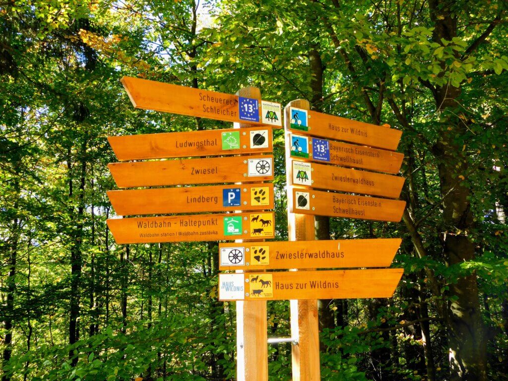 Schon am Startpunkt, dem Parkplatz Diensthüttenstraße in Sankt Oswald-Riedlhütte, wurde deutlich, dass hier wirklich an Rollstuhlfahrer gedacht wurde: Die Wege sind eben, gut befestigt, und ein Großteil verläuft über breite Bohlenwege, die speziell für Rollstühle, Rollatoren und Kinderwagen angelegt wurden.