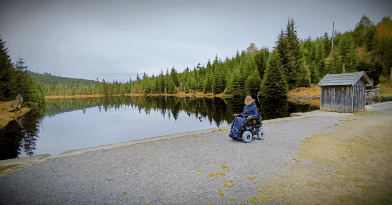 Dank meines neuen Rollstuhls mit Nackenstütze konnte ich mich entspannt zurücklehnen und die Fahrt über die Wege richtig genießen.