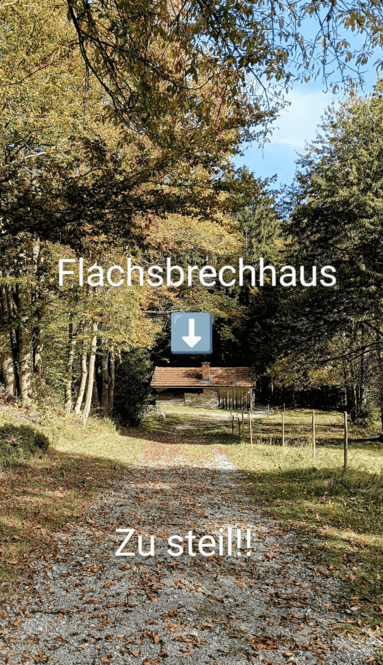 Ein Hinweis: Vom Besuch des Flachbrechhauses möchte ich mit dem Rollstuhl abraten. Mein Rollstuhl hat eine Steigfähigkeit von 18 %, doch die Rückfahrt war aufgrund der starken Steigung allein nicht mehr möglich. Zudem gibt es keinen alternativen Rückweg – also besser oben bleiben und nicht zu neugierig testen, wie ich es tat.