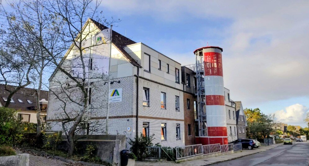 Die Jugendherberge Wittdün auf Amrum liegt an der Südspitze der Insel – direkt am Meer und nur etwa 300 Meter vom Fähranleger entfernt. Für die Überfahrt ab Dagebüll solltet ihr rund zwei Stunden einplanen.